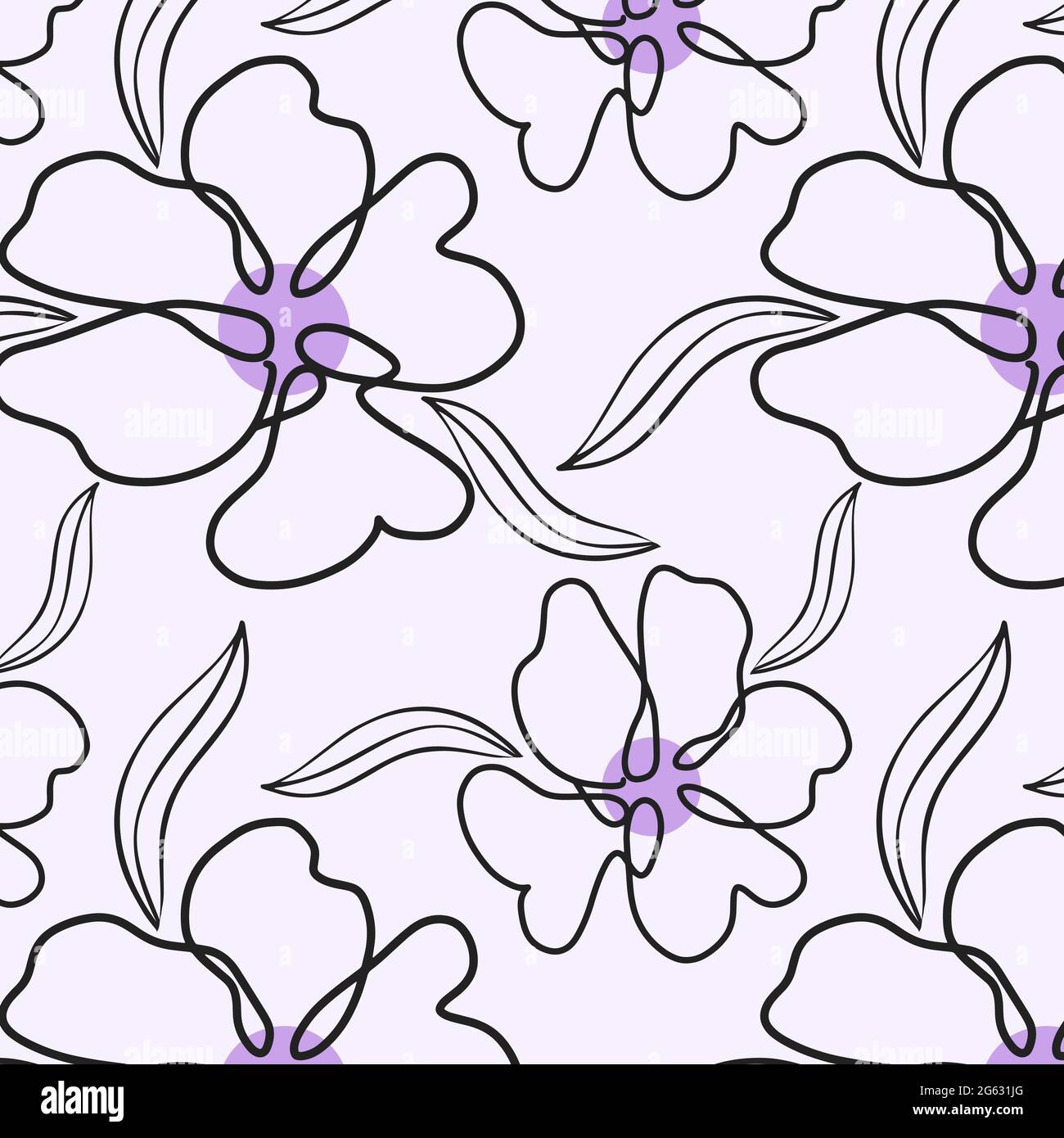Seamless Pattern With Monoline Flowers And Sheets Vector Illustration Stock Vector Image Art Alamy